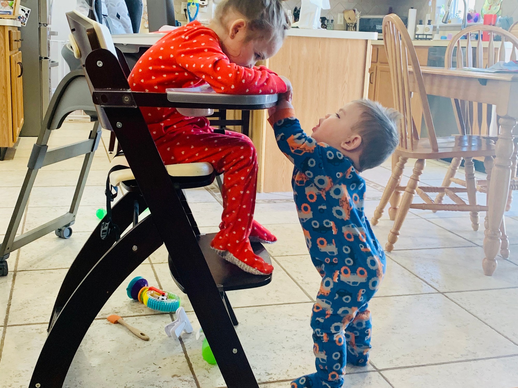 Jack keeps forging ahead without a care in the world. Today he was standing at Ella’s high chair for the first time. Hands on the tray, our littlest man was trying to get to his big sister. He determination is admirable, and extremely frightening at the same time. I keep asking myself where the last ten months have gone. Pregnancy surely didn’t fly by this fast. These are huge milestones for the family and we are trying to take the time to appreciate them all.