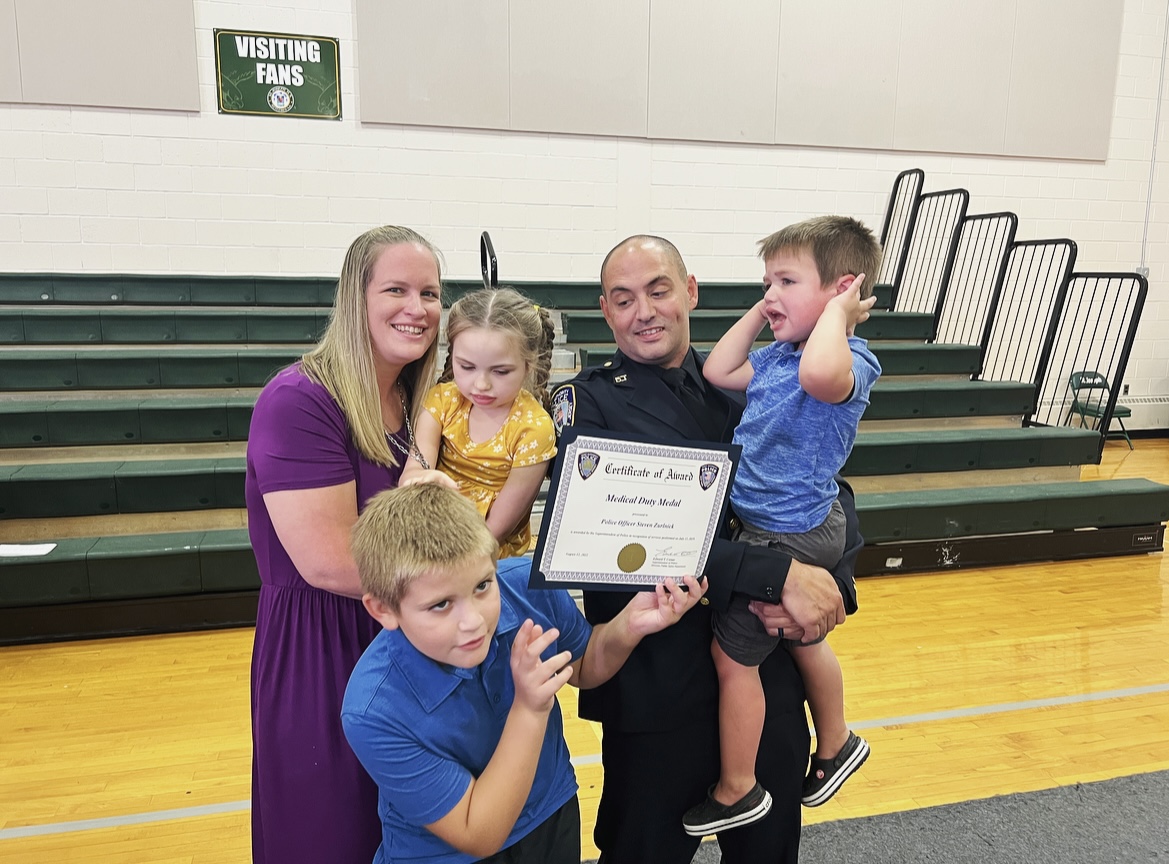 Friday was a special day for our family! We had the opportunity to attend a ceremony where Steve and his brothers in blue were being honored for the hard work that they do. To Steve it’s not a big deal because it is what he was trained to do. However, we don’t get the daily play by play so for us, it was a chance to recognize and appreciate him. Four hours round trip, three kids, one nurse, and Ella’s medical equipment couldn’t stop us from being there.