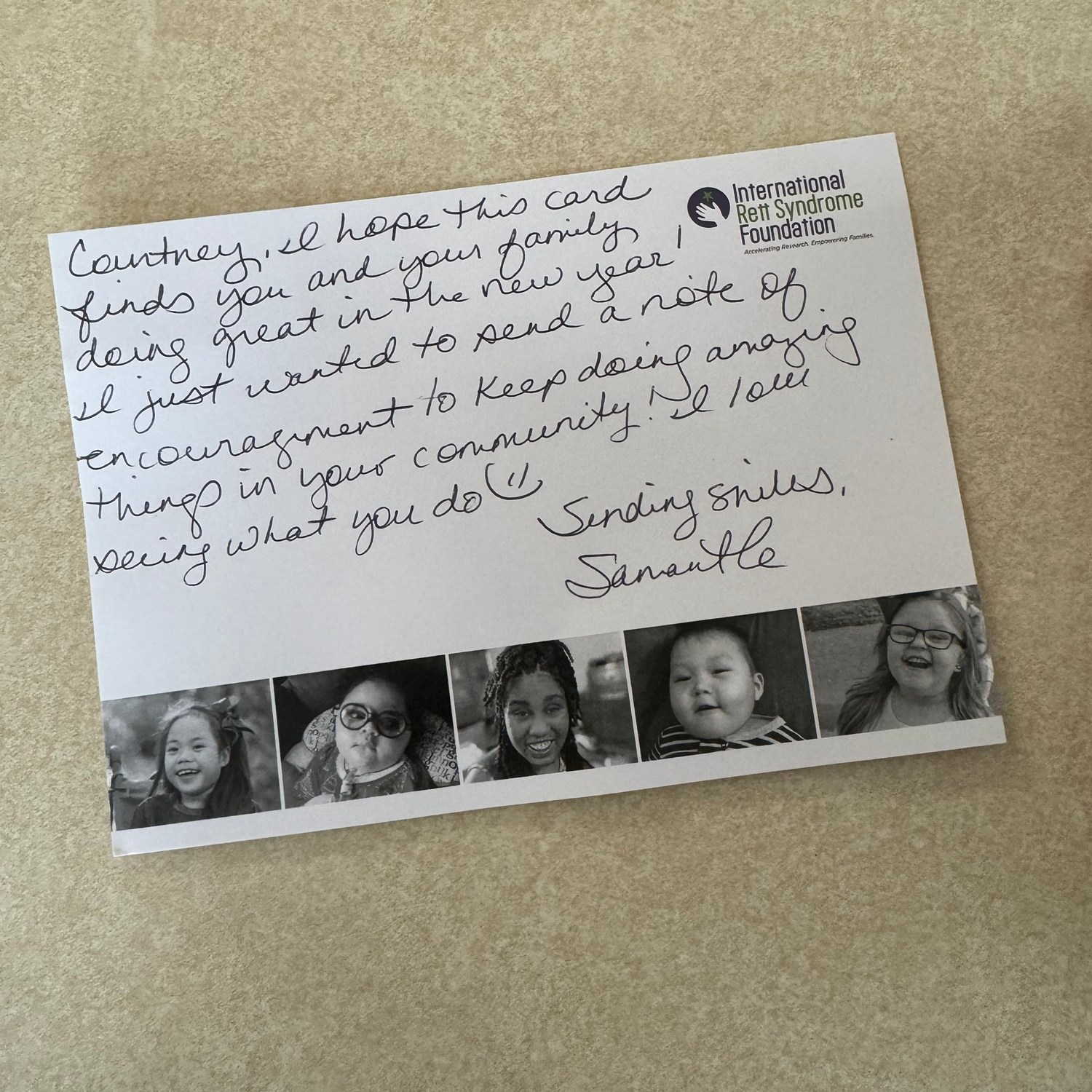 As if the day couldn’t get any better Jen and I secured and indulged in two Shamrock shakes from McDonald’s, she of course got a small making me the glutinous friend. We parted ways, I went to get Jack from school and came home to check the mail. Inside was the sweetest note from a woman associated with the International Rett Syndrome Foundation. Sometimes it’s hard to see all the good work you are doing so it’s nice when other people do and acknowledge it. It was the midday pick up I needed.